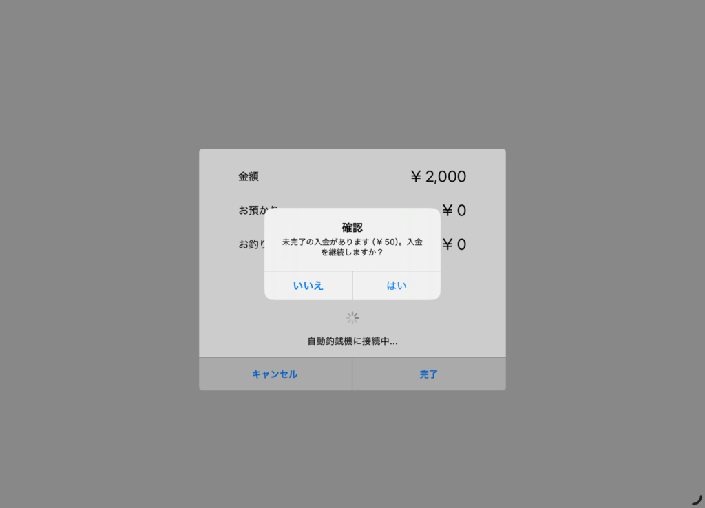 - ・支払確定を押下して、釣銭は出てきたか