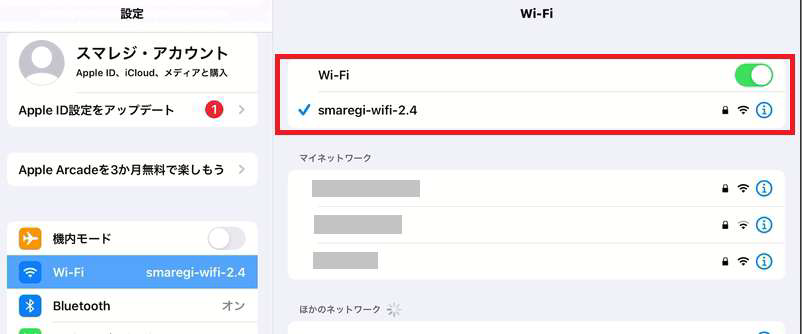 (対処方法2)スマレジiPadのWi-Fiの接続状況をご確認ください。