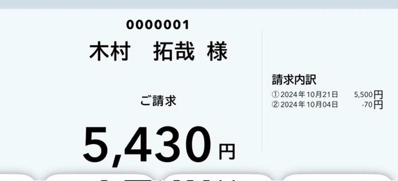 例:10/4 に70 円の返金が発生しており、10/21 に5,500 円の会計がある場合