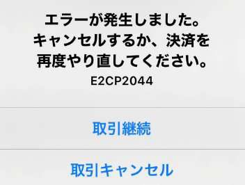① エラーメッセージに「取引継続」「取引キャンセル」のボタンがありますか?