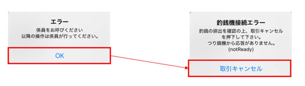 3-②.お金が取引キャンセルを押下しても排出されない、再度会計しようとしても同様の現象が発生する場合